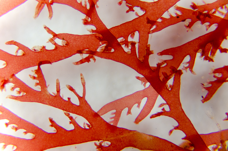 Fern-like fronds anchored to rocky outcrops. It's worth remembering that red algal tissues are made up of filaments, and so when we see form resembling that in green plants, we're seeing analogous morphology and not homologous.